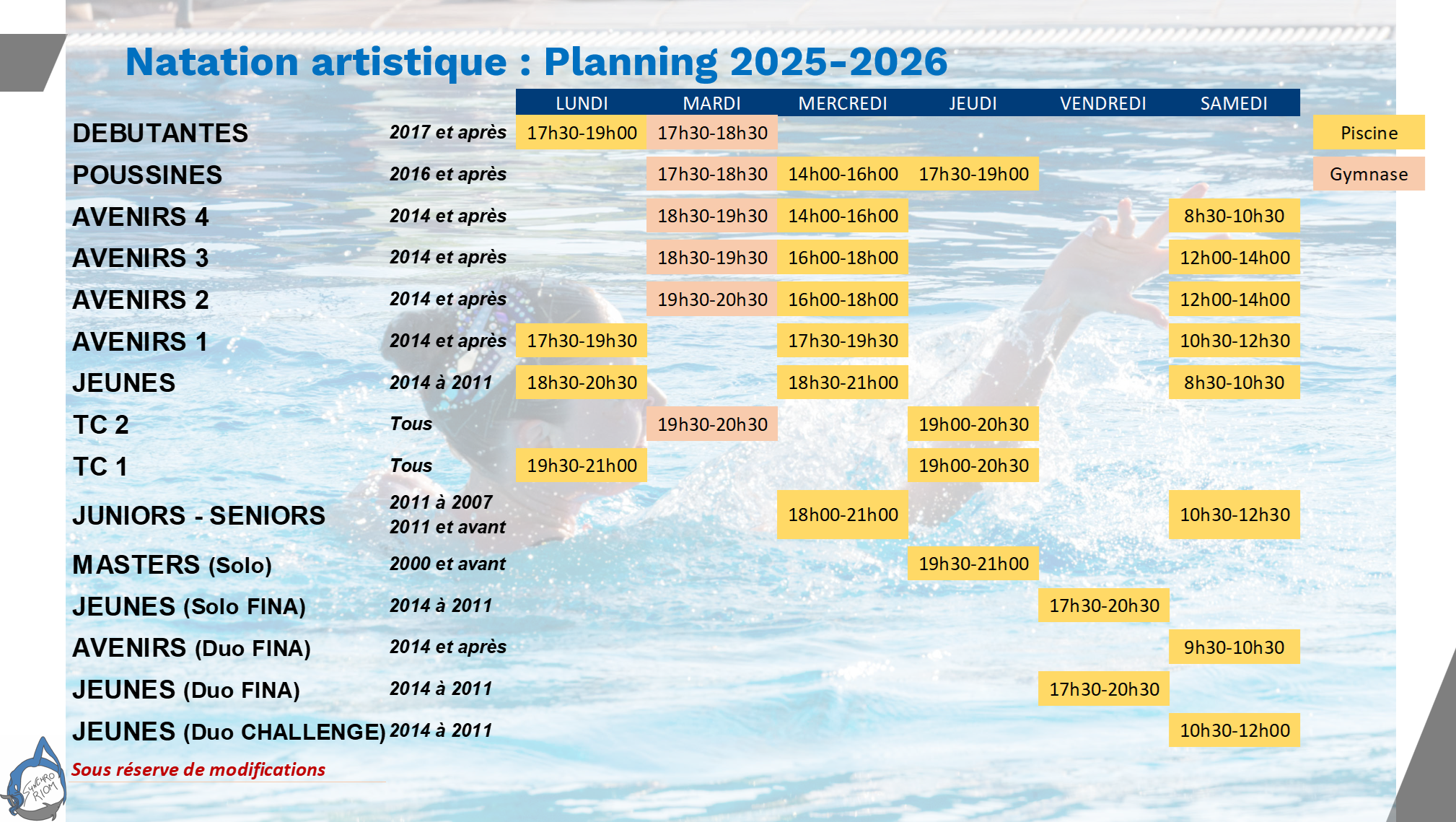 TARIF NATATION ARTISTIQUE