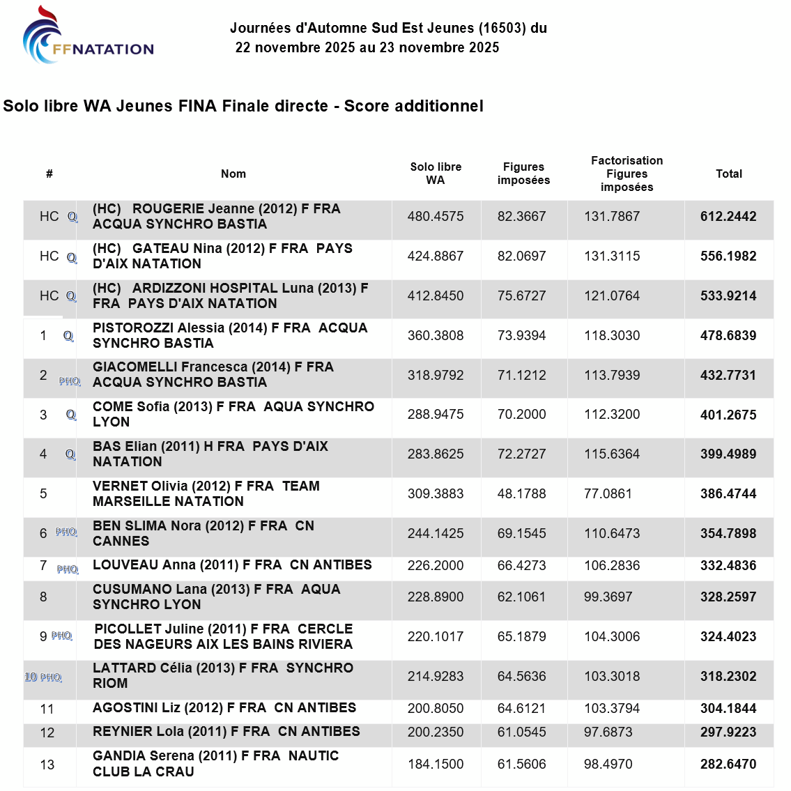 - Célia LATTARD qualifiée en phase qualificative de l’épreuve Solo Jeunes (entrainé par Eve PLANEIX, Sophie GOUTET et Séverine REYNAUD).